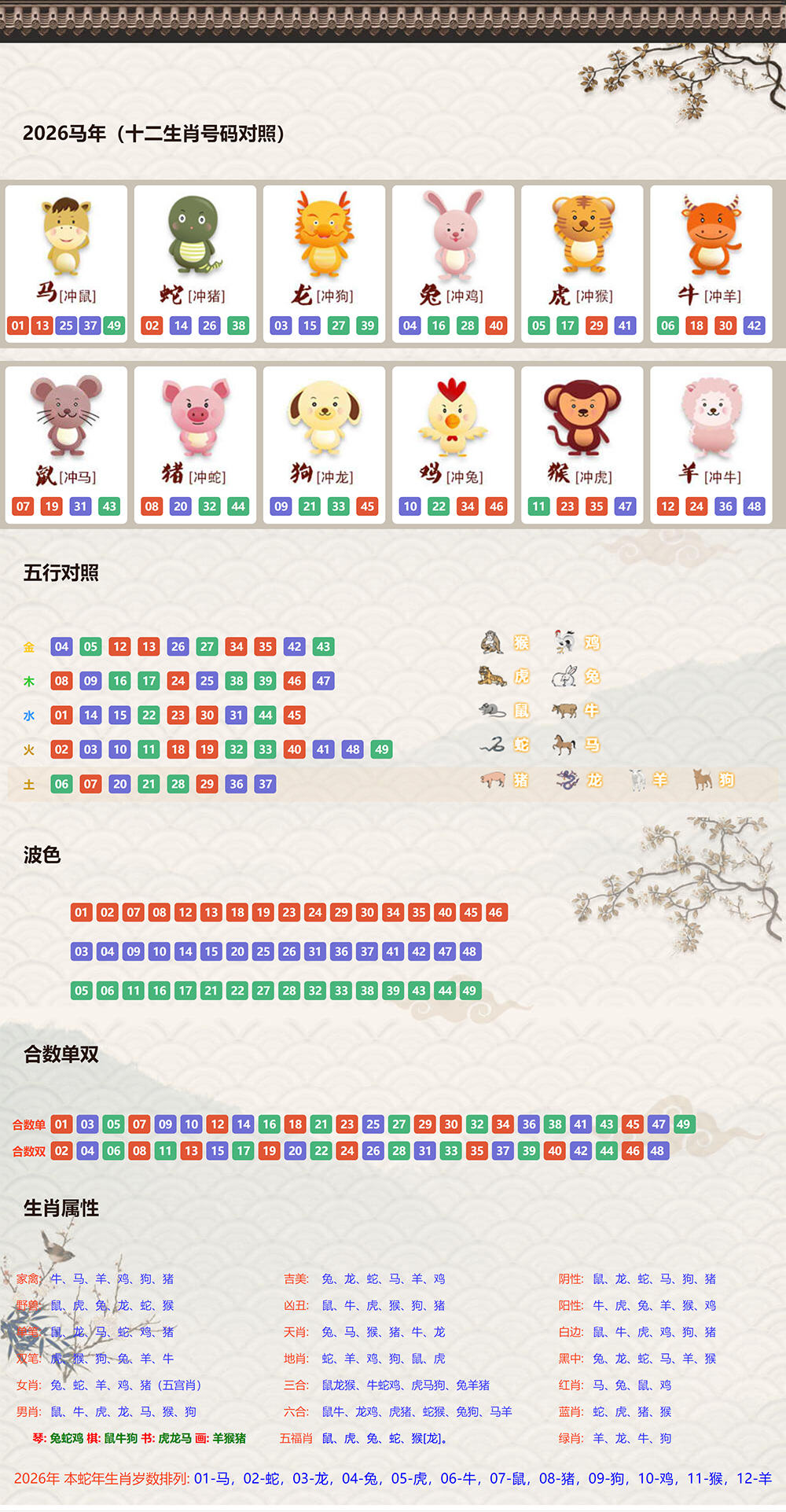 01马.02蛇.03龙.04兔.05虎.06牛